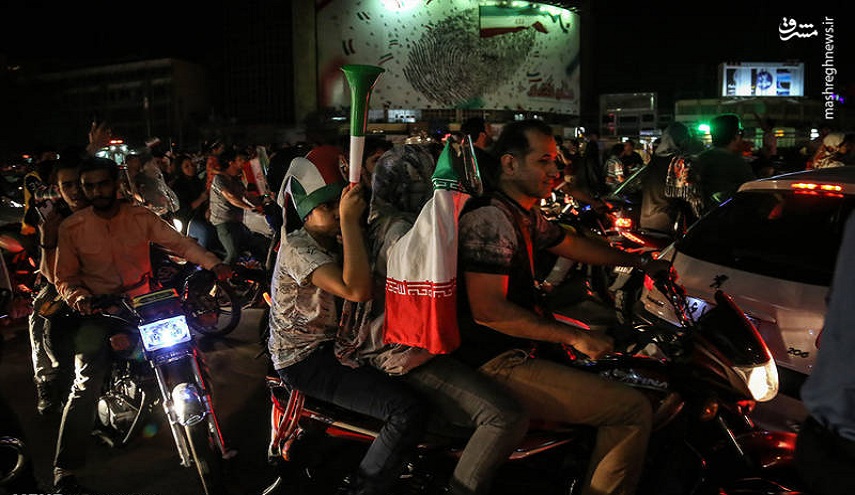 إحتفل الشعب الإيراني أمس الأثنين، بتأهل فريق كرة القدم الوطني لكأس العالم2018، و ذلك بعد فوزه علی فريق اوزبكستان 2 مقابل لاشئ.