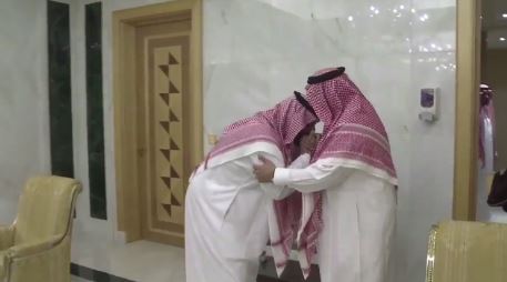 وظهر بن نايف وهو يدخل على بن سلمان فيما انطلق ولي العهد الجديد ليقبل ايدي وأرجل بن نايف.