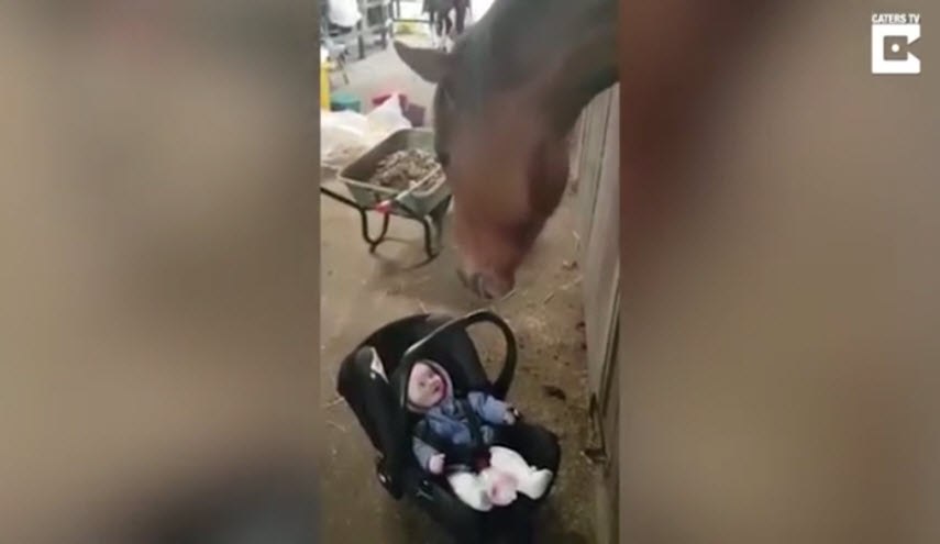 وظهر الحصان الذي يدعى "ريد" بالفيديو وهو يضع فمه على مقبض مقعد الطفلة البالغة من العمر 8 شهور ثم يهزه بلطف، في اسطبل خيول في مدينة "نوتنغهام" شمال العاصمة البريطانية لندن، خلال زيارة للطفلة وأسرتها.