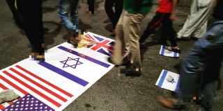 ودان المتظاهرون الدورين البريطاني والأمريكي في دعم الجرائم التي تقوم بها إسرائيل بحق الشعب الفلسطيني.