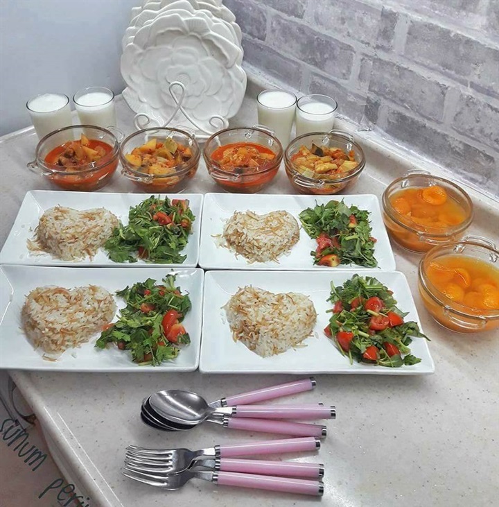 أبهرت الزوجة رواد الموقع بتفننها في تقديم الأطباق لأسرتها المكونة من أربعة أشخاص وطريقة تقديمها الأطباق بشكل غير مألوف وجذب تنوع الأصناف عدد كبير من المتابعين.