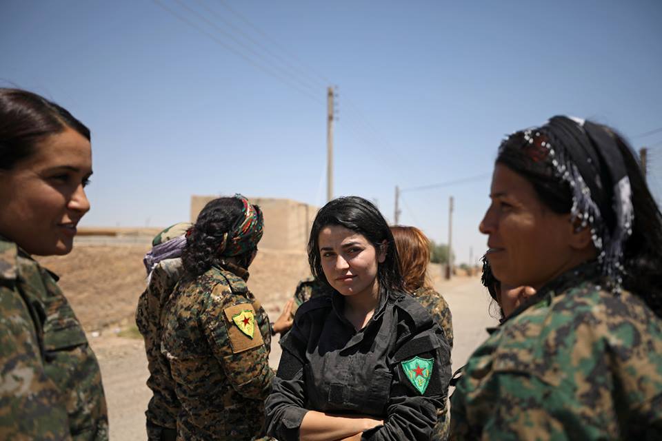 وكما يظهر في الفيديو الذي نشر امس الثلاثاء، فإن المقاتلة الكردية وهي تحمل بندقية "قناص" داخل غرفة وبجوارها مقاتل اخر وقد صوبت بندقيتها نحو هدف لتنظيم داعش، وفي ذلك الحين تمر طلقة بالقرب من رأسها لتصيب الجدار القريب منها بمسافة لا تتجاوز بضع سنتمترات، لتنجو المقاتلة من الموت المحتم.