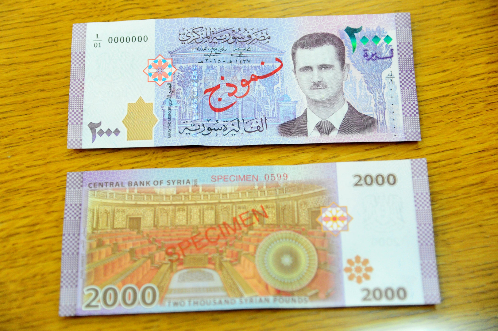 وطرحت الحكومة السورية، أمس الأول الأحد، فئة جديدة من الأوراق النقدية بقيمة ألفي ليرة سورية تحمل على وجهها صورة الرئيس بشار الأسد وعلى الوجه الآخر قاعة مجلس الشعب السوري.