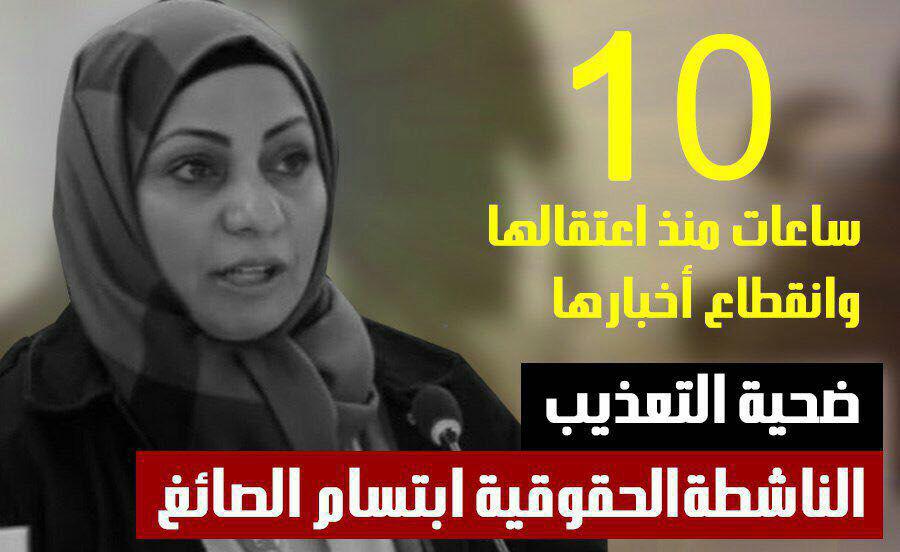 كانت العديد من المنظمات الحقوقيّة، من بينها منظمة فرونت لاين ديفيندرز، قد أدانت بشدّة جريمة التعذيب والانتهاكات وسوء المعاملة التي تعرّضت لها الناشطة الحقوقيّة ابتسام الصائغ خلال التحقيق معها بمقرّ جهاز الأمن الوطنيّ، يوم الجمعة الماضي 26 مايو/ أيّار 2017، وتهديدها لتقدّم استقالتها من منظمة سلام للديمقراطيّة وحقوق الإنسان وتنهي نشاطها الحقوقيّ.