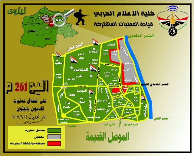 وتمكنت القوات العراقية بعد معارك عنيفة مع ارهابيي تنظيم "داعش" من تكبيد الارهابيين خسائر فادحة وتمكنت من قتل 57 إرهابي بينهم 4 قناصين كما تمكنت القوات من تدمير مقر لـ"داعش" وفجرت سيارة مفخخة ودراجة نارية.