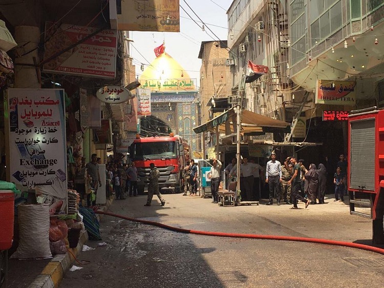 بالصور.. حريق بالقرب من مرقد ابو الفضل العباس (ع) في كربلاء المقدسة