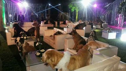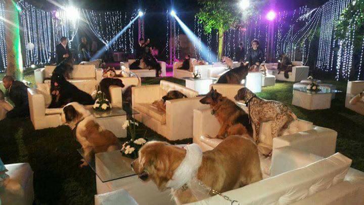 وتناقل ناشطون في مواقع التواصل الاجتماعي صوراً تبدو لأول وهلة أنها مركبة أو نسج من الخيال، لكنها في الواقع توثق حفل زفاف غريب الأطوار معازيمه من الكلاب فقط.