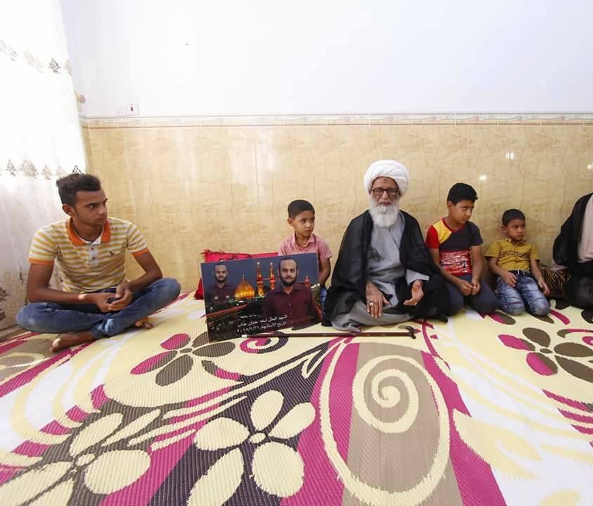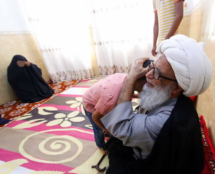 وقلد المرجع النجفي بيده رؤوس أَيتام الشهداء، مقدماً لهم عبارات الفخر والاعتزاز من قبل المرجعية الدينية.