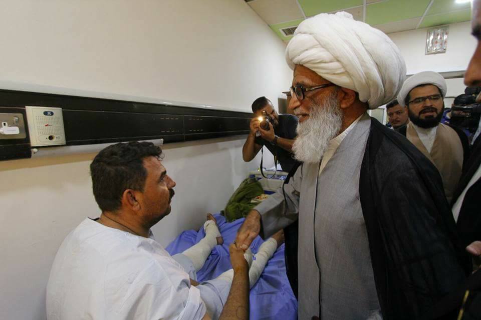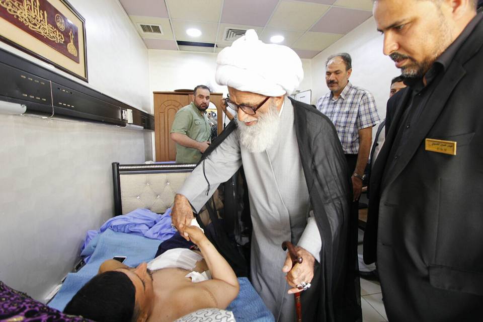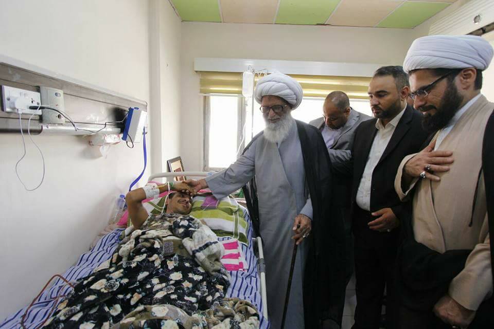 إِلى ذلك زار سماحته الجرحى الراقدين في مستشفى الصدر الطبي، ليؤكد أَن جراحهم هي وسام عزِّ وفخر، حفظت المقدسات وصانت الأَعراض وأُحيت الأَنفس منوها أنها ستكون شفيعة لهم يوم القيامة.