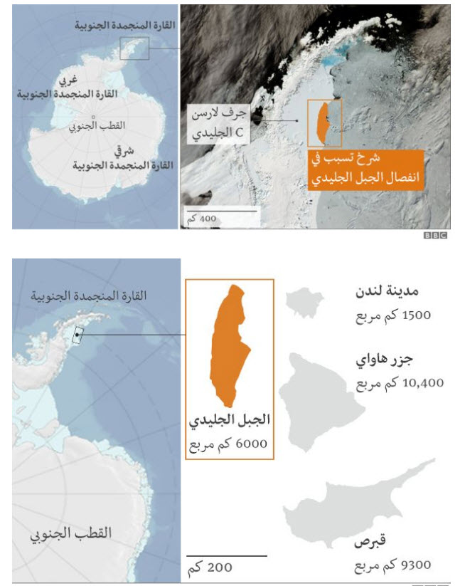 وكان العلماء يتوقعون هذا الحدث، إذ انهم كانوا يتابعون تطور شرخ كبير في الجليد الذي يكسو جرف لارسن منذ أكثر من عشر سنوات.