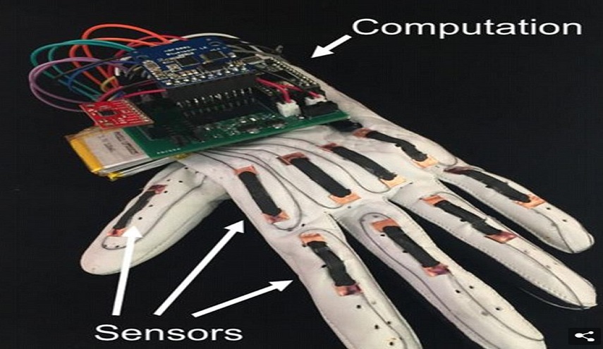 ويتكون الجهاز المبتكر من قفازات رياضية، زودت بـ 9 مستشعرات على مفاصل الأصابع، بحيث تتمدد عندما يحني المستخدم أصابعه، ما يؤدي إلى إنتاج إشارة كهربائية، تتم معالجتها بواسطة البرنامج لمعرفة معنى الحركة.