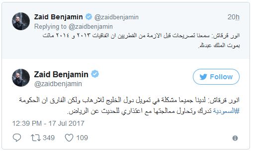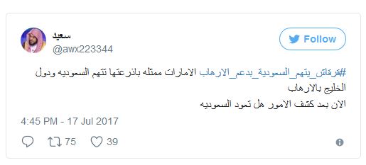 وتفاعل النشطاء مع الهاشتاغ على "تويتر"، بعدما قال قرقاش: "لدينا جميعا مشكلة في تمويل دول الخليج (الفارسي) للارهاب ولكن الفارق ان الحكومة السعودية تدرك وتحاول معالجتها مع اعتذاري للحديث عن الرياض".