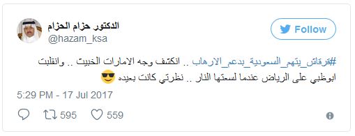 وأثارت تلك التصريحات جدلاً واسعاً انبرى معها المغردين السعوديين لمهاجمة قرقاش الذي تطاول على المملكة حسب ما رصدت “وطن”, وقال الدكتور حزام الحزام معلقا على تصريحات قرقاش "انكشف وجه الامارات الخبيث .. وانقلبت ابوظبي على الرياض عندما لسعتها النار .. نظرتي كانت بعيده".