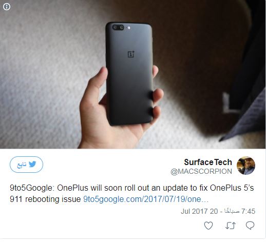 واكتشف المستخدمون أنه بمجرد الاتصال بأرقام "911" أو غيرها من أرقام الطوارئ، يتم إعادة تشغيل "وان بلس 5"، ولا يتصل بها على الإطلاق.