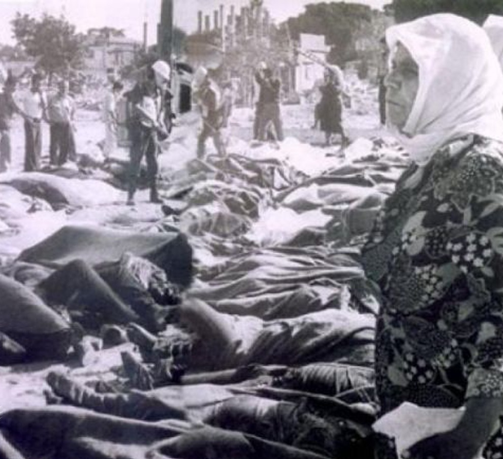 وينفي تسبان في روايته للمأساة، ادعاءات بعض المشاركين في المذبحة بأن القتلى أُصيبوا في تبادل إطلاق نار، مؤكدا أنه رأى الناس وقد أُطلقت عليهم النار في ظهورهم، موضحا أن "شيخا وامرأة يجلسان في زاوية الغرفة ووجههما على الحائط وإصابتهما من الخلف".