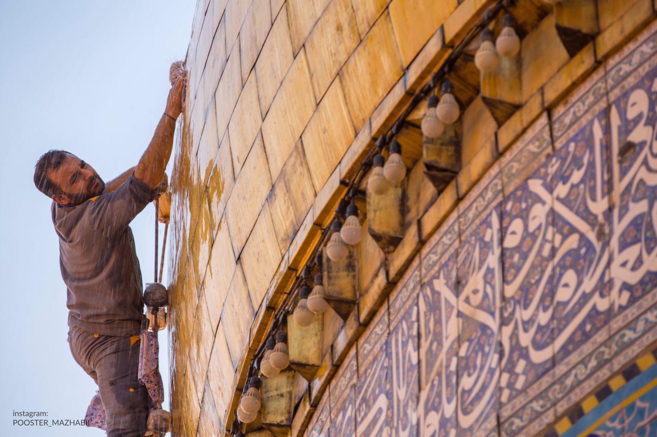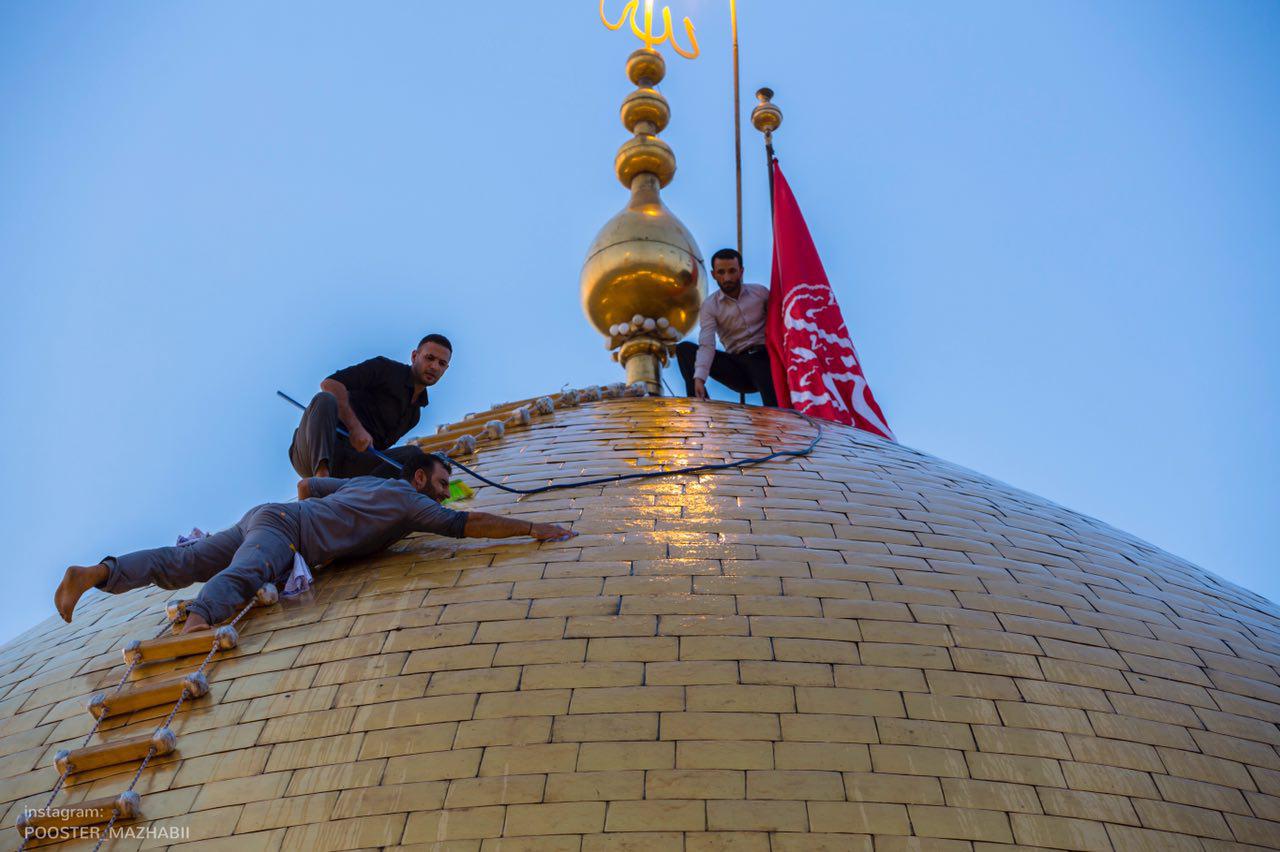 بالصور.. غسل القبة الذهبية لمرقد أبي الفضل العباس عليه السلام