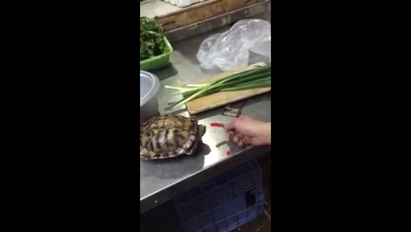 أظهر مقطع الفيديو السلحفاة وهي تتناول الفلفل الاحمر الذي أصابها بغضب شديد وراحت تركض بسرعة فوق الطاولة وكادت أن تسقط لكن تمكن صاحبها من الإمساك بها.