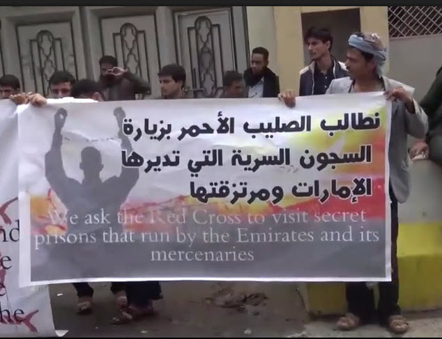 وشملت مطالب المحتجين التمسك بفتح تحقيق جدي عن قضية الاختفاء القسري ليمنيين يرجح انهم محتجزون في سجون الإمارات السرية في اليمن، وطالبت زوجة أحد المختفيين قسريا البعثة الدولية للصليب الأحمر بالعمل جديا على تحقيق مطالب العائلات”، وأكدت “لن نتوقف عن متابعة قضية أسرانا أبدا مهما أرعبونا “، في إشارة لضغوط تمارسها جهات يمنية داخلية متحالفة مع الإمارات.