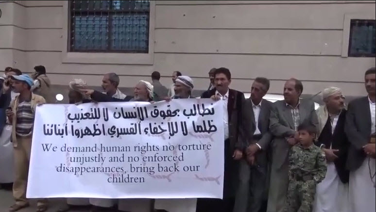 وتم احتجاز (قسرا) أعداد غير معروفة من اليمنيين وتمارس ضدهم عمليات تعذيب. ودعا المحتجون الصليب الأحمر وكل منظمات حقوق الانسان إلى الضغط بشدة لإطلاق سراح المعتقلين وإنقاذهم من التعذيب.