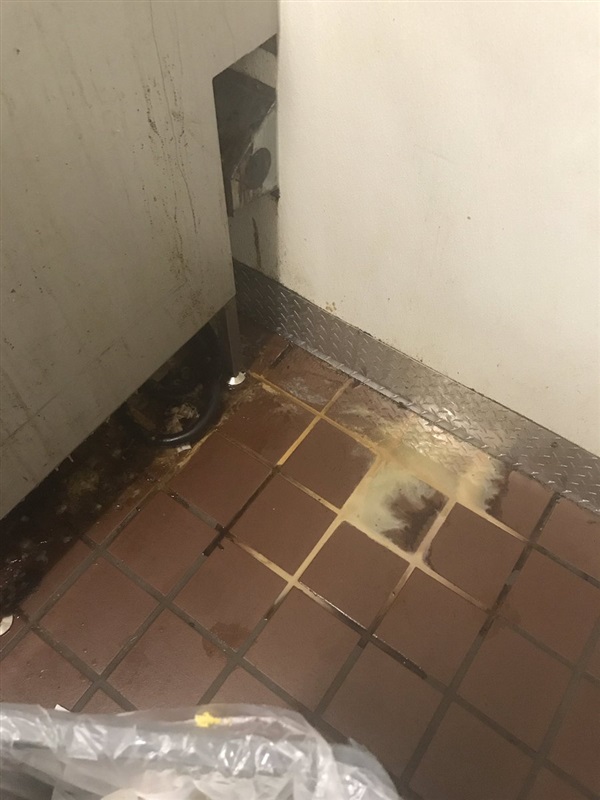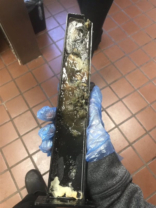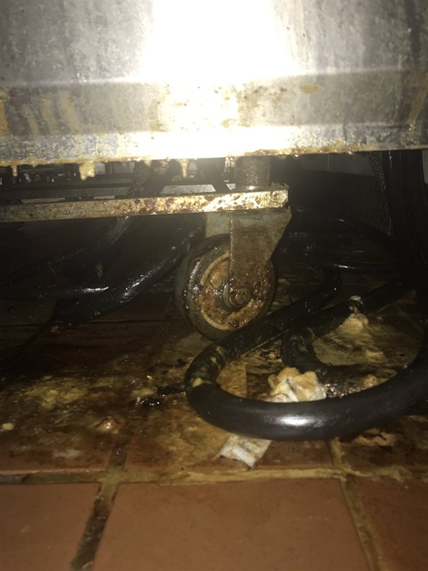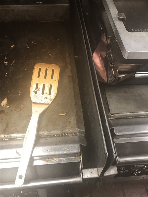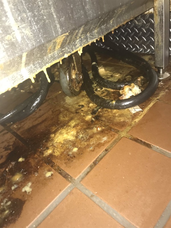 كما شارك صورا أخرى صادمة من داخل المطعم بالولايات المتحدة الأمريكية، تظهر الشحوم على الأرض، وملعقة قذرة.