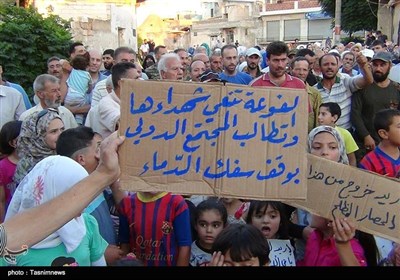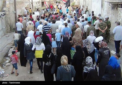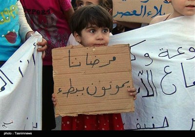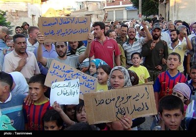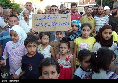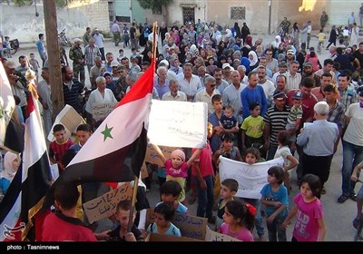 أهالي الفوعة وكفريا يتظاهرون مطالبين بانهاء الحصار عنهم