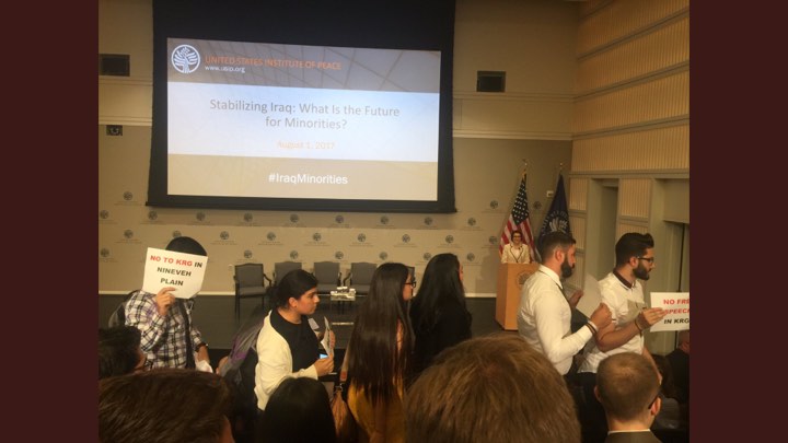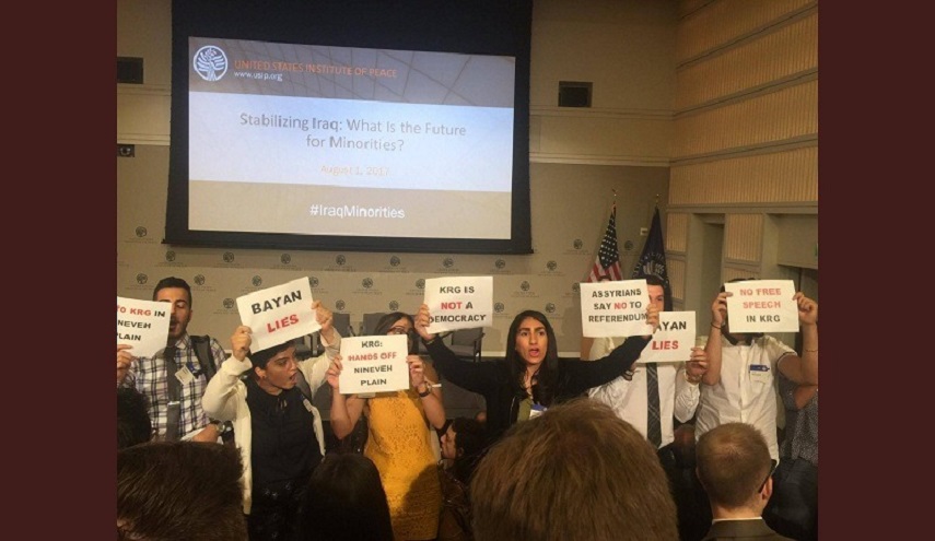 ورفع شباب اشوريون شعارات تطالب حكومة كردستان برفع يدها عن سهل نينوى، مؤكدين رفضهم للاستفتاء المزمع اجراؤه في الـ 25 من شهر سبتامبر/ايلول المقبل، كما اشاروا الى "عدم وجود حرية التعبير" في كردستان العراق وان "الحكومة ليست ديمقراطية".