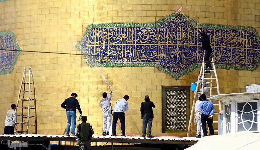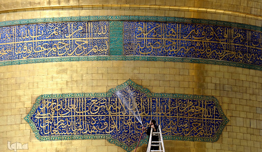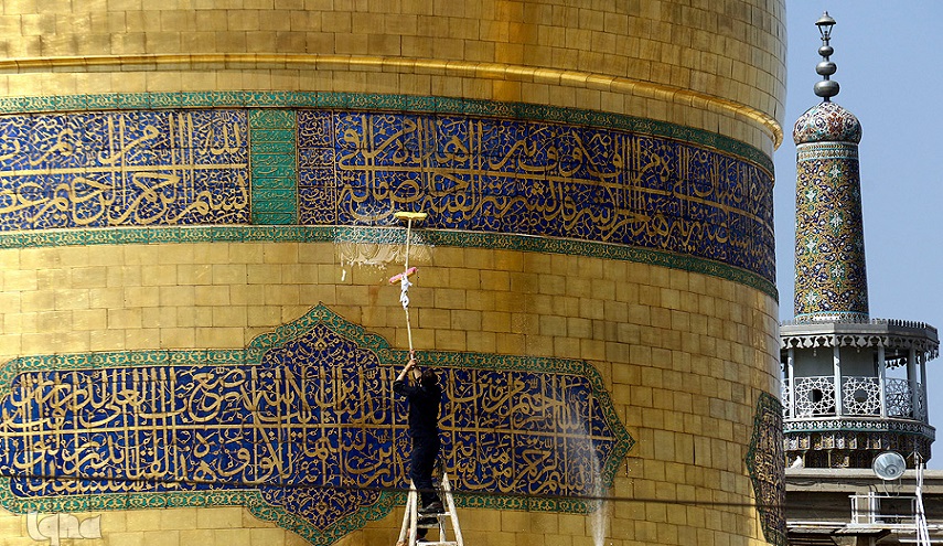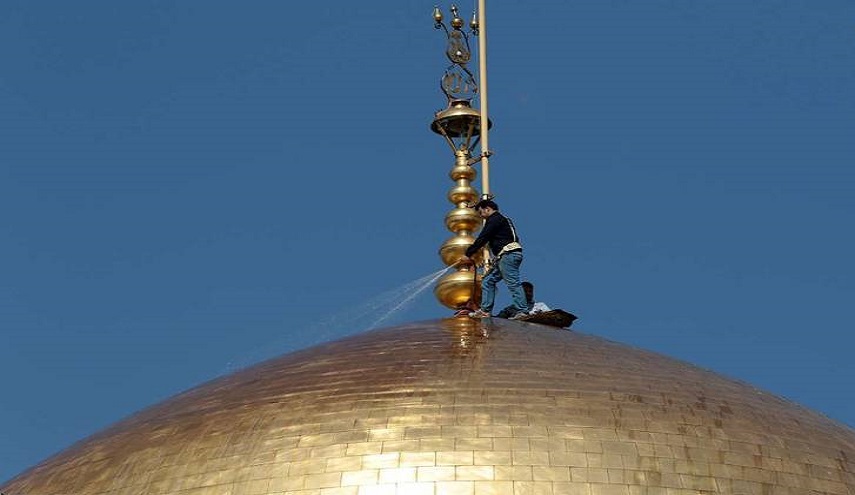 بالصور.. غسل القبة الذهبية لحرم الإمام الرضا عليه السلام