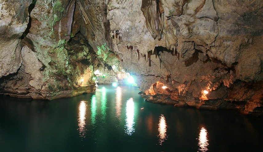 المعالم الطبيعية في هذا الكهف فريدة من نوعها حيث يتضمن أعمدة رسوبية ذات ألوان جذابة، ولكن أجواءه الداخلية جافة وتمخره مياه تنبع من عين تقع على مقربة منه، وإلى جانبه هناك العديد من العيون التي تنبعث منها المياه المعدنية الدافئة، ويقول علماء الآثار أنه يضرب بجذوره في الألفية الثانية قبل الميلاد، ويقع في مرتفعات "جاهك" و "شوارق".