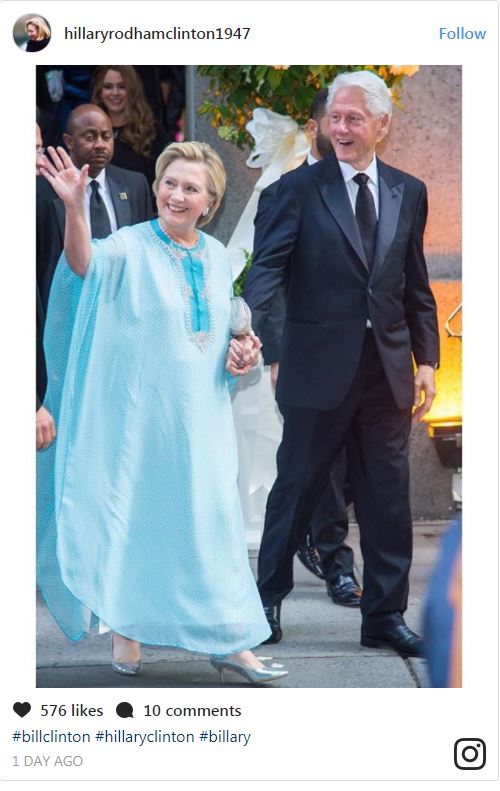 ووفقا للصور المنشورة عبر حسابها على موقع الصور “إنستجرام” ورصدتها “وطن”، فقد ظهرت “كلينتون وهي ترتدي زيا عربيا مغربيا لفت أنظار الضيوف المشاركين بالحفل.