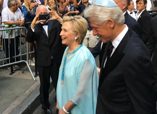 وبحسب الصور المنشورة فقد ظهرت “كلينتون” برفقة زوجها الرئيس الأمريكي الأسبق بيل كلينتون.