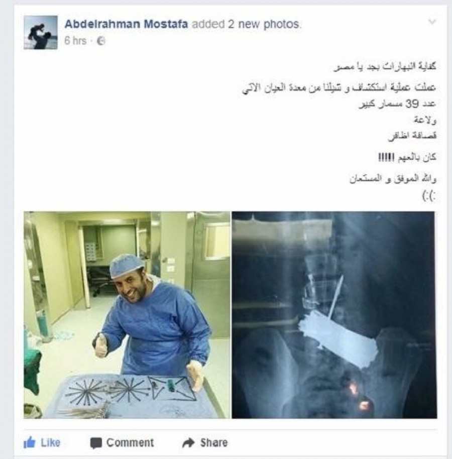 المصري عبد الرحمن مصطفى، الجراح بمستشفى قصر العيني، تدوينة على صفحته على فيسبوك كشف فيها التفاصيل.
