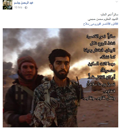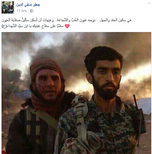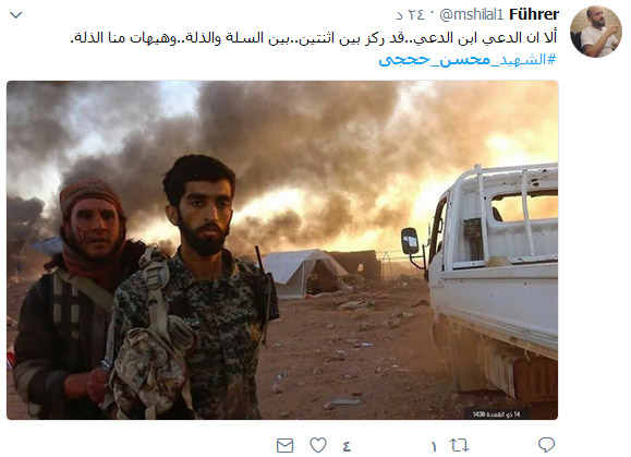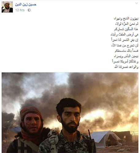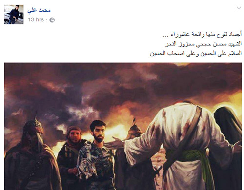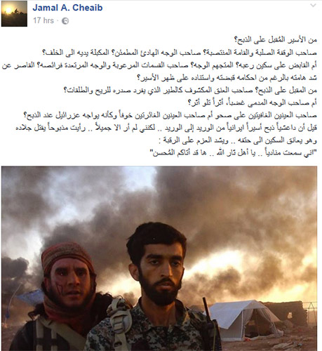 وتداول الناشطون صورة الشهيد قبيل ذبحه من قبل "داعشي" يمسك به من الخلف، وبيده سكين الذبح.