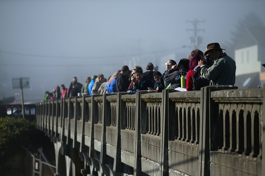 وبعد أسابيع من الانتظار هلل الناس في "ديبو باي" بأوريجون، لمشهد ظل القمر وهو يمر مباشرة أمام الشمس ليحجبها تماما باستثناء هالتها.
