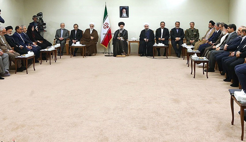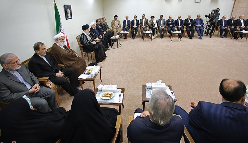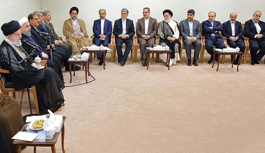 استقبل قائد الثورة الاسلامية الامام علي الخامنئي يوم السبت رئيس الجمهورية حجة الاسلام حسن روحاني واعضاء الحكومة الجديدة، في اول لقاء منذ تشكيلها الاسبوع الماضي.