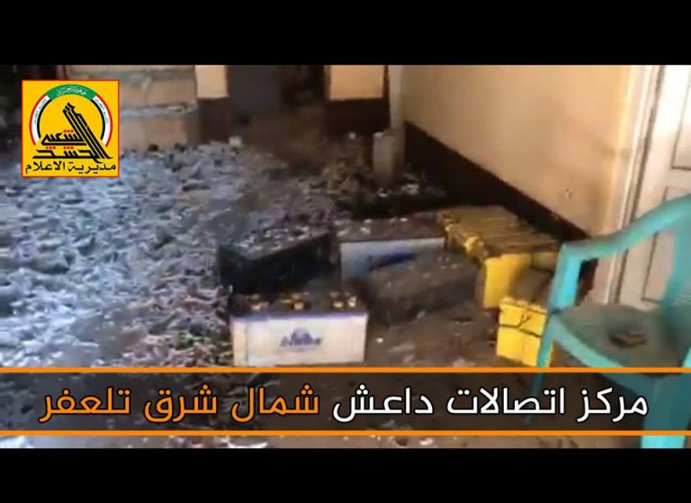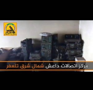 أفاد إعلام الحشد الشعبي في العراق أن قوات اللواء الرابع في الحشد عثرت على أكبر مركز اتصالات لداعش شمال شرق قضاء تلعفر، أقدمت داعش على حرقه بالكامل لإخفاء جميع معلوماتهم.