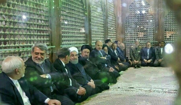 ورافق الرئيس روحاني والوزراء، خلال الزيارة، حفيد الامام الراحل (رض) السيد حسن خميني.