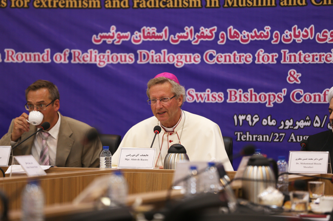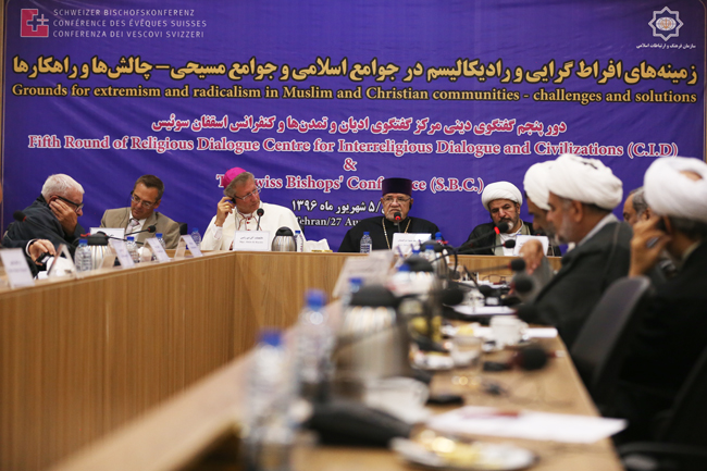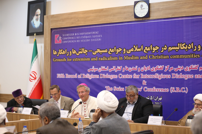 وعقدت الجولة الخامسة من الحوار بين المركز الدولي لحوار الأديان والحضارات التابع لرابطة الثقافة والعلاقات الاسلامية في ايران ومجلس أساقفة سويسرا أمس الاحد تحت عنوان "أساسيات التطرف والراديكالية في المجتمعات الإسلامية والمجتمعات المسيحية؛ التحديات والحلول" في العاصمة الايرانية طهران.