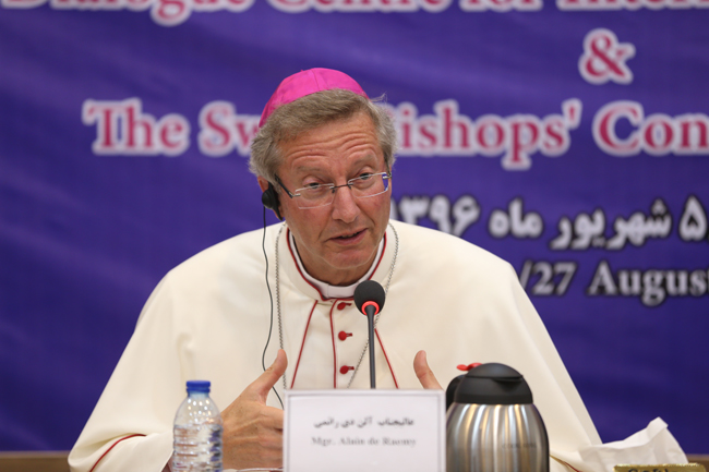 وتحدث في هذا الإجتماع رئیس اللجنة الإسلامیة في مؤتمر الأساقفة في سویسرا، "آلن دي رائمي" حیث قال ان رسالة المسیح (ع) هي السلام والصداقة معتبراً العمل علی هذه الرسالة تمهد الی مکافحة التطرف فی الحیاة.