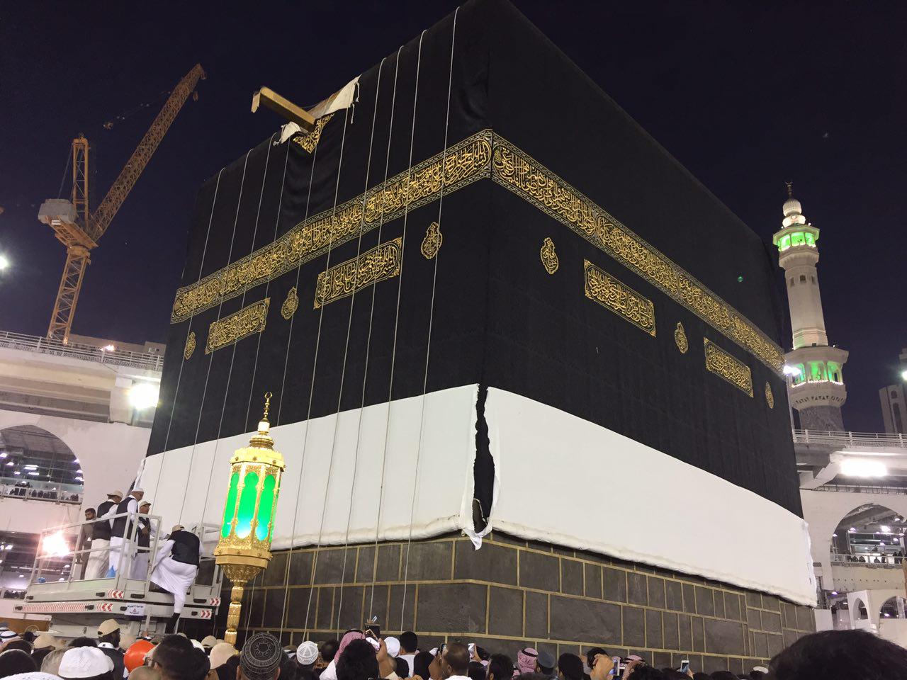 أشرفت الرئاسة العامة لشؤون المسجد الحرام، فجر الخميس، على تبديل كسوة الكعبة المشرفة التي اكتست بحلة العيد كما جرت العادة في فجر يوم عرفة من كل عام.