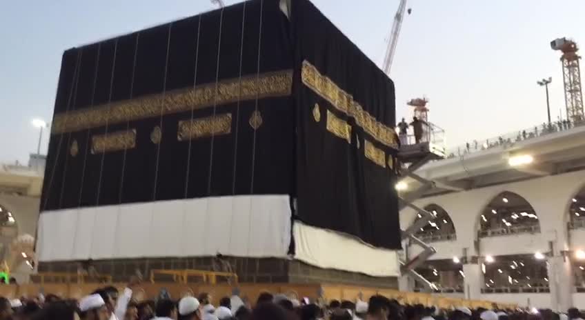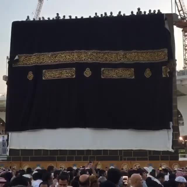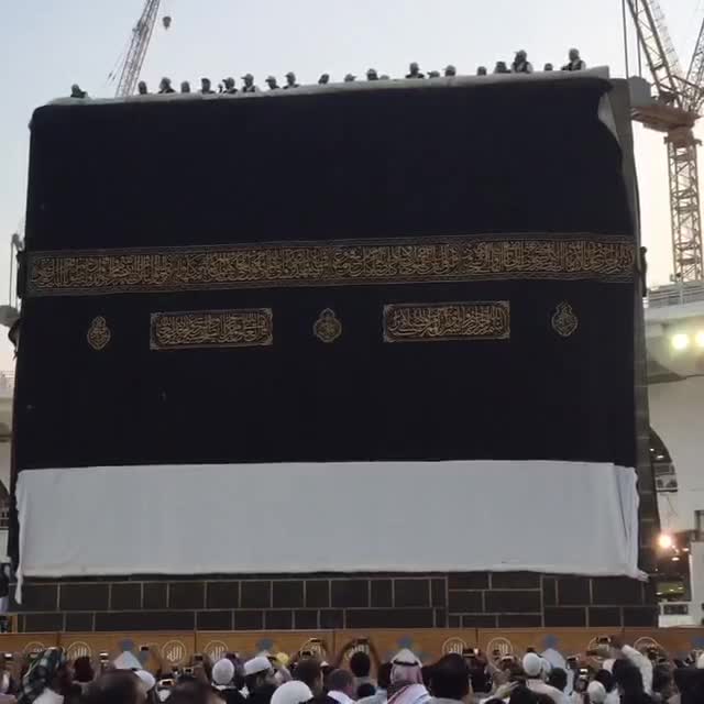 وأظهرت الصور رفع ثوب الكعبة القديم، وغسل جدران الكعبة وتعطيرها قبل إنزال الثوب الجديد الذي يستغرق تجهيزه شهورا عديدة في مصنع كسوة الكعبة، ويحتاج إلى كميات كبيرة من المعادن الثمينة والحرير الخالص.