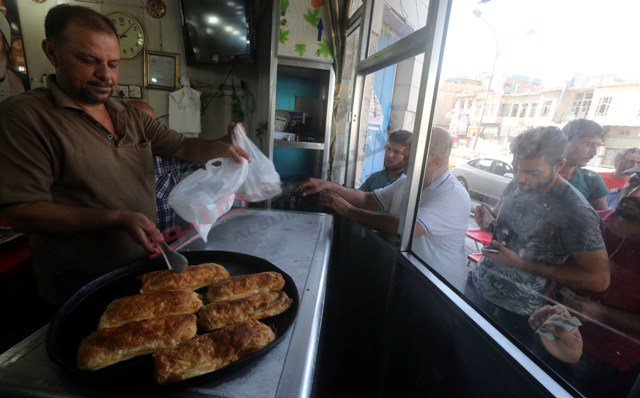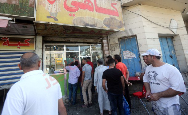 ونشرت وكالة السومرية نيوز صورا لأحد محال بيع "الكاهي" في العاصمة بغداد والناس يقفون في طابور طويل أمامه ينتظرون الحصول على وجبة العيد المفضلة.