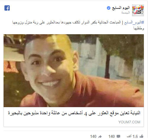 وكشف أحد جيران المجني عليهم أن رب الأسرة ونجليه (19 عاما و 11 عاما) "قاموا بأداء صلاة الفجر جماعة بالمسجد ولم يراهم أحد في صلاة عيد الأضحى".