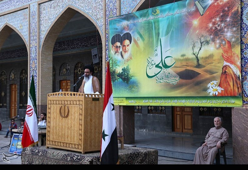 كما كان لممثل الولي الفقيه في سوريا كلمة أكد فيها أن هذا العيد هو لعامة المسلمين وليس لطائفة واحدة أو مذهب واحد، وبارك سماحته بالانتصارات التي يحققها الجيش السوري والمقاومة الإسلامية في سوريا والعراق، والتي كان آخرها فك الحصار عن دير الزور.