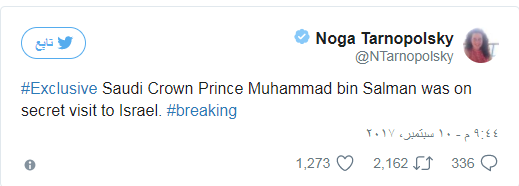 بينما كتب صحفي من جريدة الجيروزاليم بوست الإسرائيلية على حسابه على تويتر تؤكد على أن بن سلمان هو من زار إسرائيل سرا.