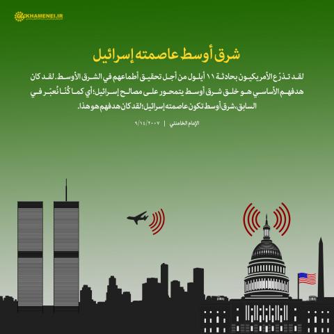 في الذكرى السنوية السادسة عشرة لحادثة ١١ سبتمبر نضع بين أيديكم مقطعاً من كلمة للإمام الخامنئي حول الأهداف المبيّتة لأمريكا من وراء هذه الحادثة والمطامع التي تنشدها الولايات المتحدة الأمريكية من أجل الحفاظ على مصالح "إسرائيل" في الشرق الأوسط.