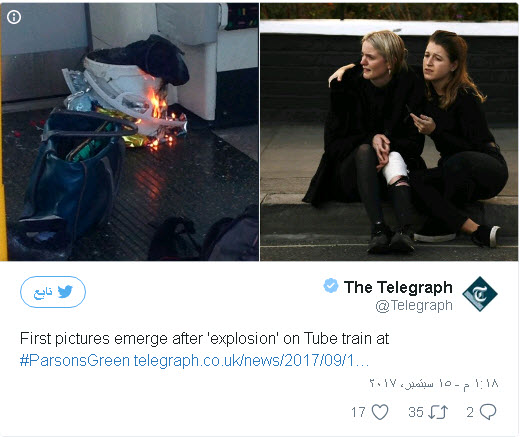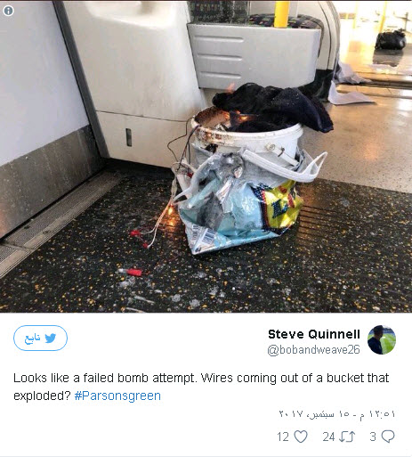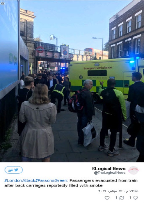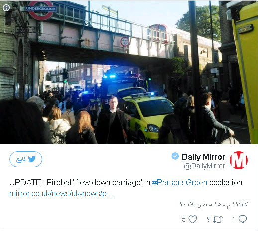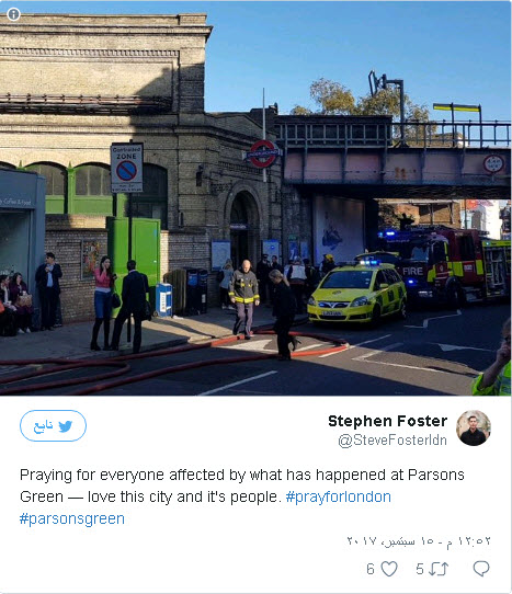10:30 شرطة لندن أكدت أنباء الحادث في تغريدة على موقع تويتر، جاء فيها: "نحن على علم بالحادث في محطة مترو "بارسنز غرين"، رجال الشرطة في الموقع".
