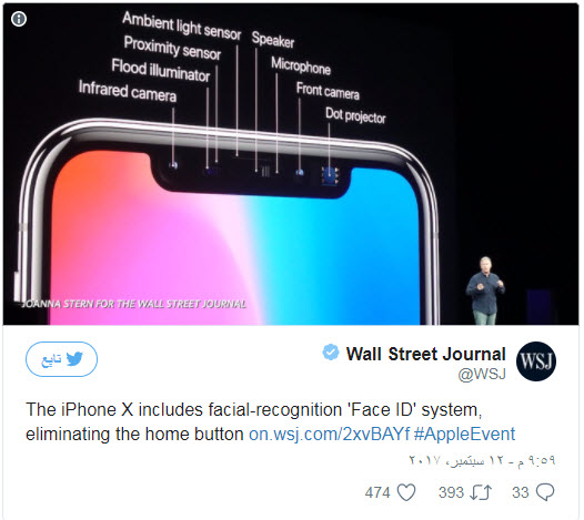 استغنت شركة "أبل" في هاتفها الجديد "آيفون X" كليا من حيث المزايا والتصميم ، عن الزر الرئيسي وبصمة الإصبع، وحل محلها ميزة "Face ID" ببصمة الوجه عالية الدقة.