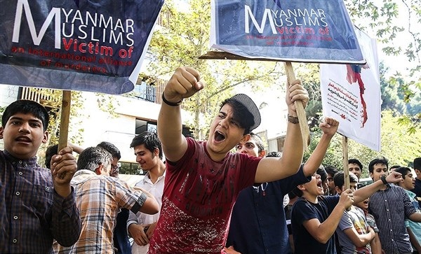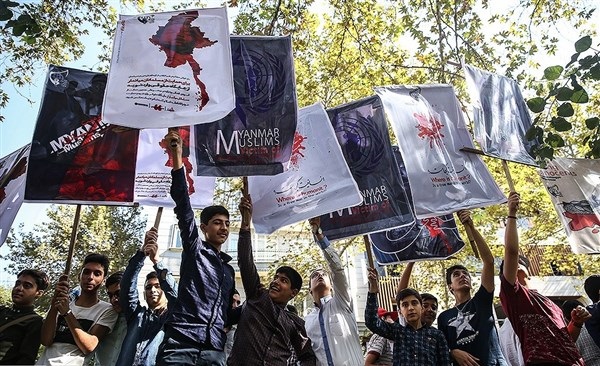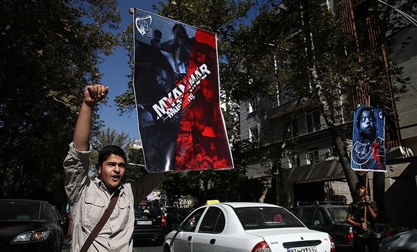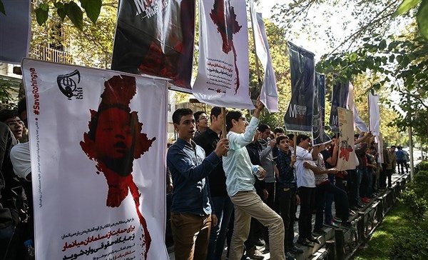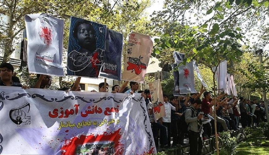 نظم حشد من التلامذة الايرانيين تجمعا امام مكتب منظمة الامم المتحدة بطهران صباح يوم امس احتجاجا على الابادة البشرية للمسلمين ومن ضمنهم الاطفال في
