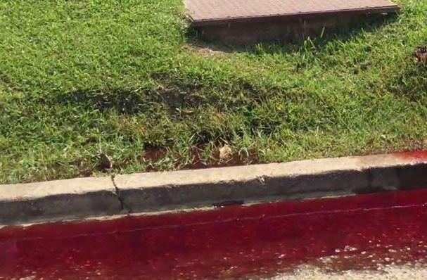 وأظهرت الصور السائل الأحمر يغطي الحديقة الأمامية من الدار حتى وصل إلى الرصيف.