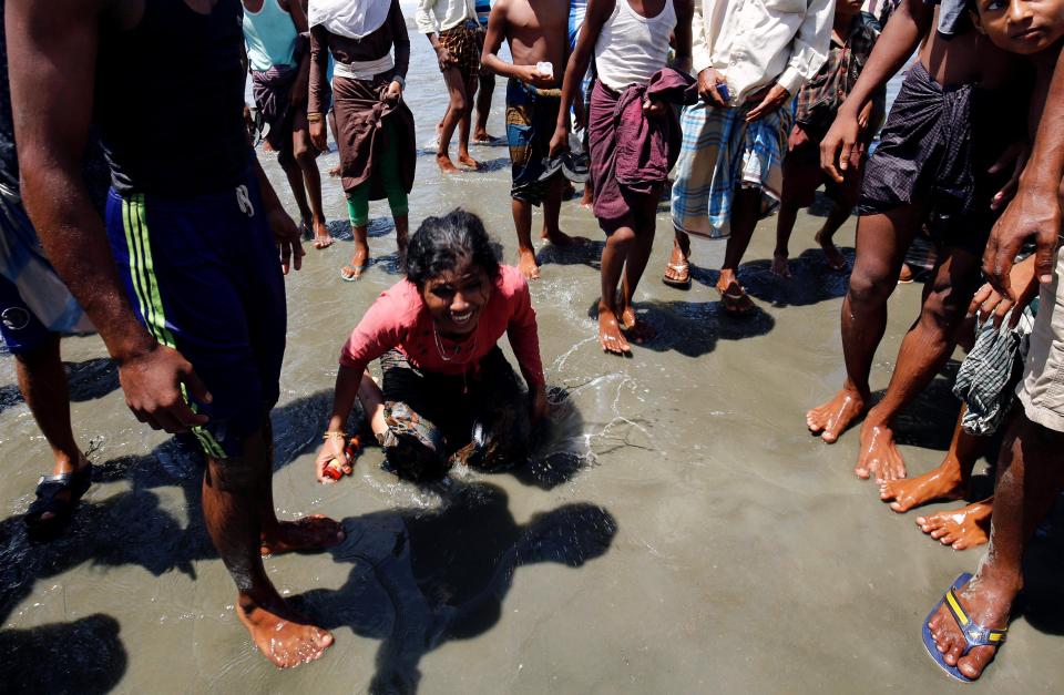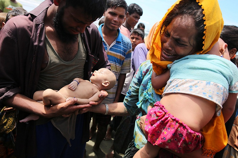 و تُظهر الصور المُنتشرة، مشاهد مخيفة ومؤلمة من تحسُر والدي الرضيع بعد وصولهم الى الشاطئ، ومن الواضح أن طالبي اللجوء من الروهينغا يكافحون للهروب من العنف العرقي للجيش والبوذيين المتطرفين من ميانمار.